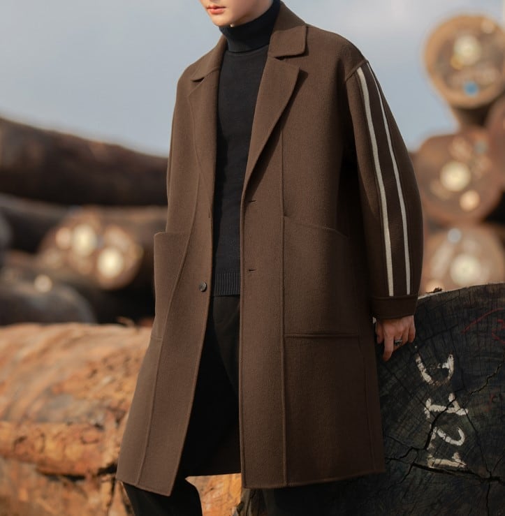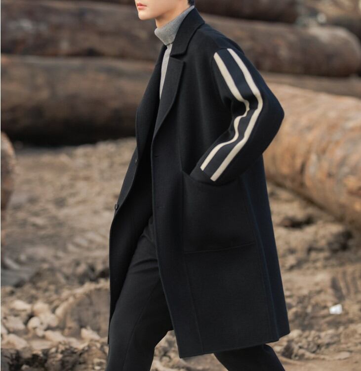 シンプルながらも存在感のあるロング丈チェスターコート。
