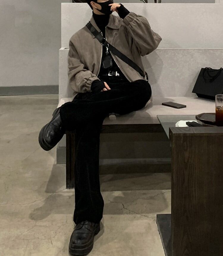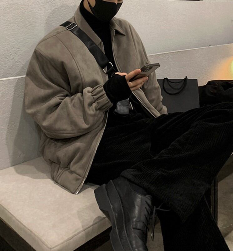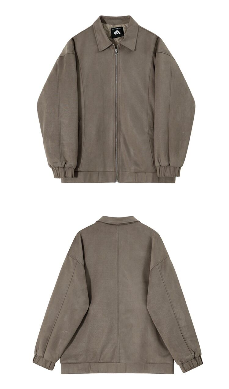 スエード調のジップアップジャケットは、オーバーサイズのシルエットがリラックス感を演出します。