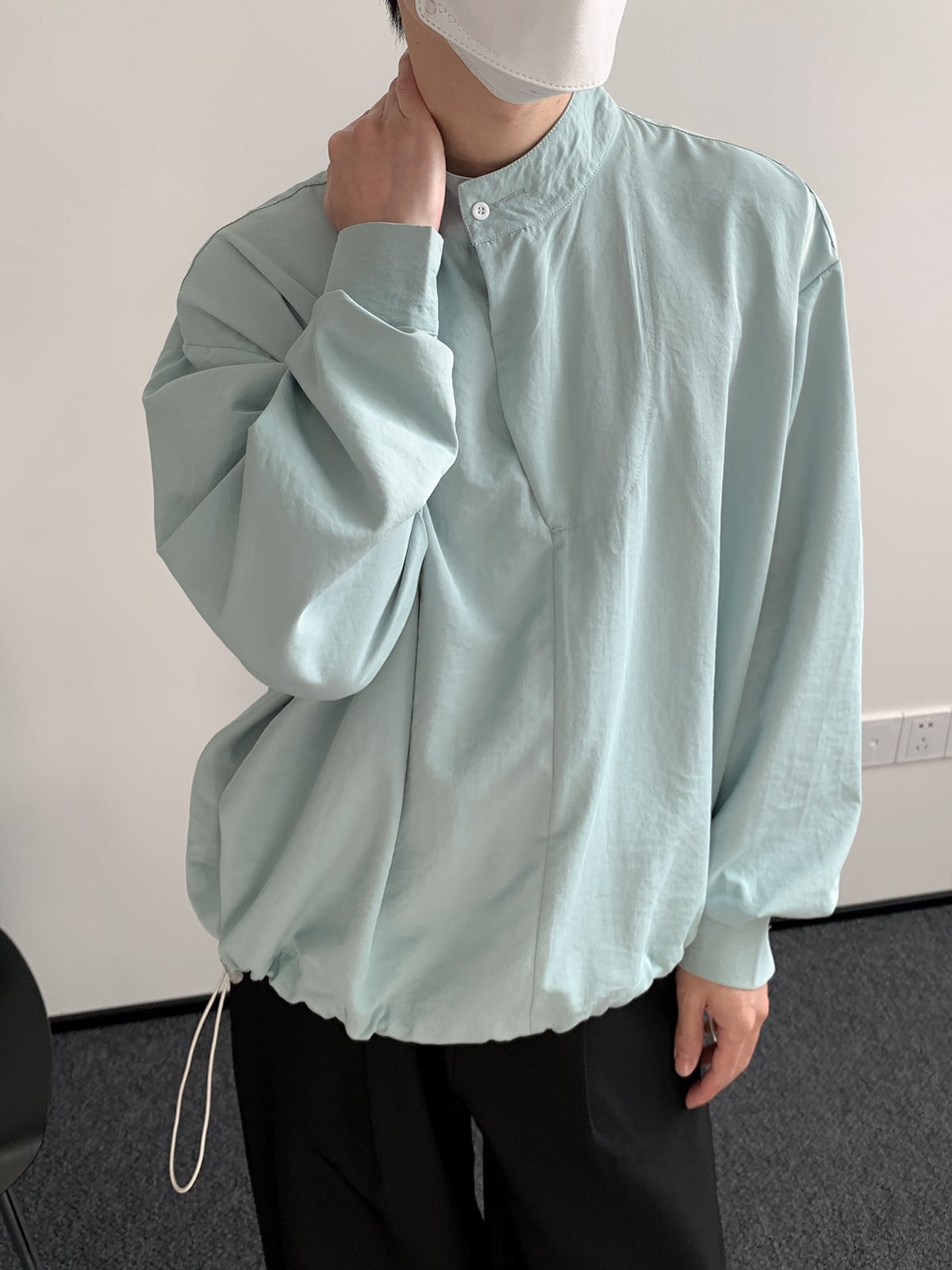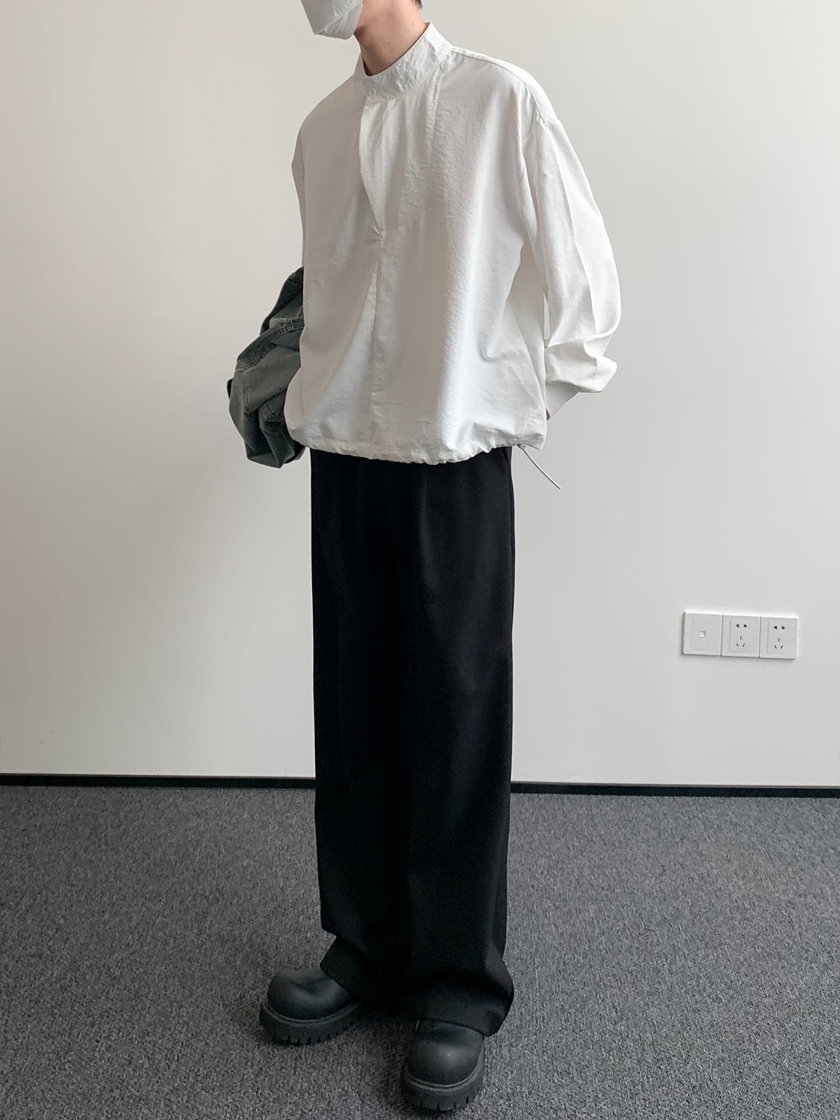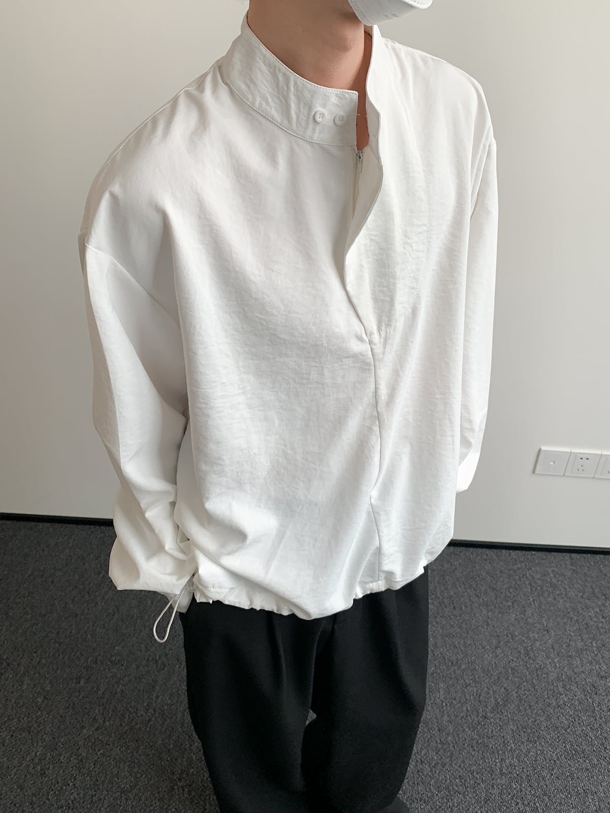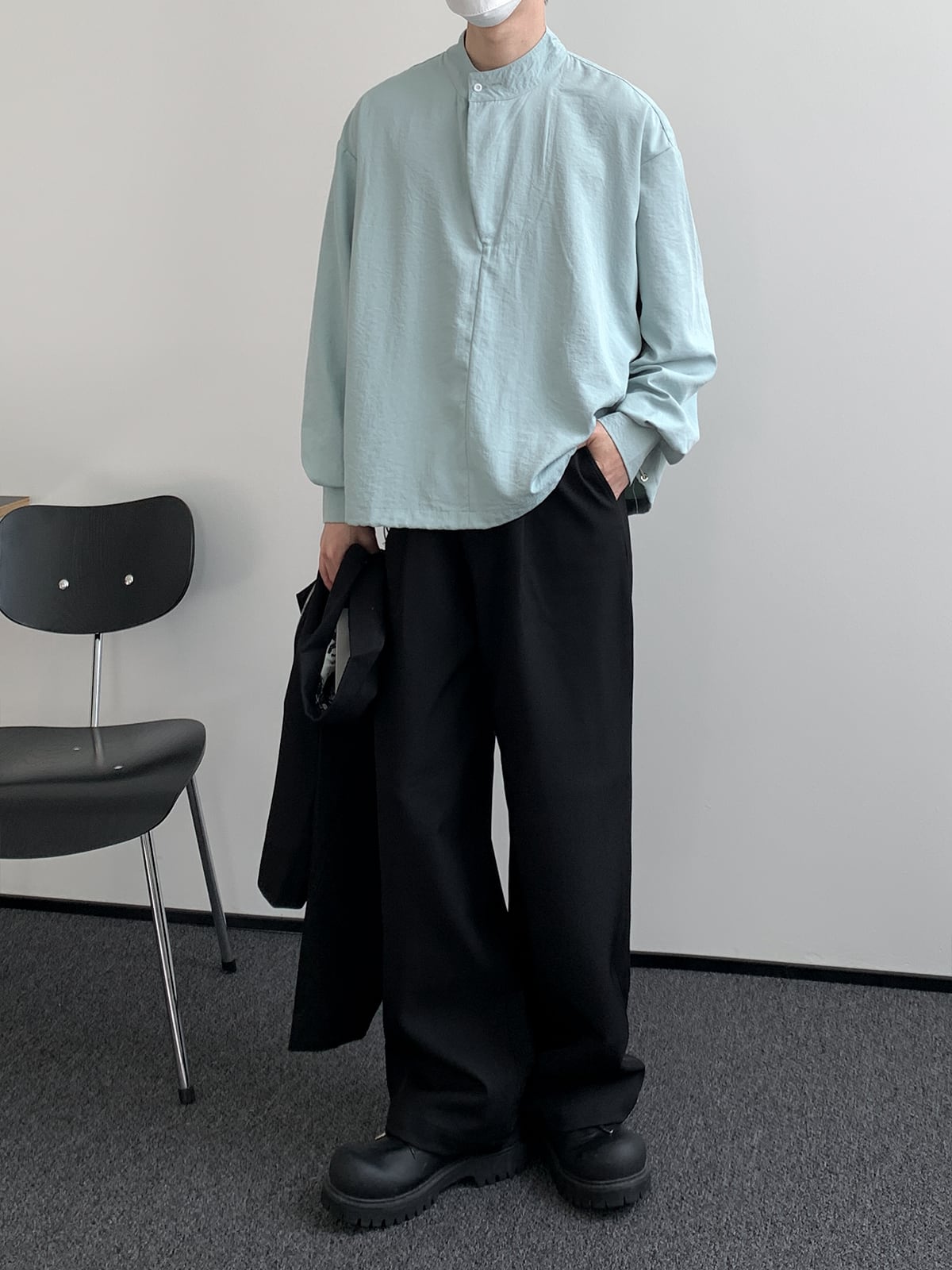 着心地がよく、どんなシーンにも合わせやすいスタンドカラーシャツです。