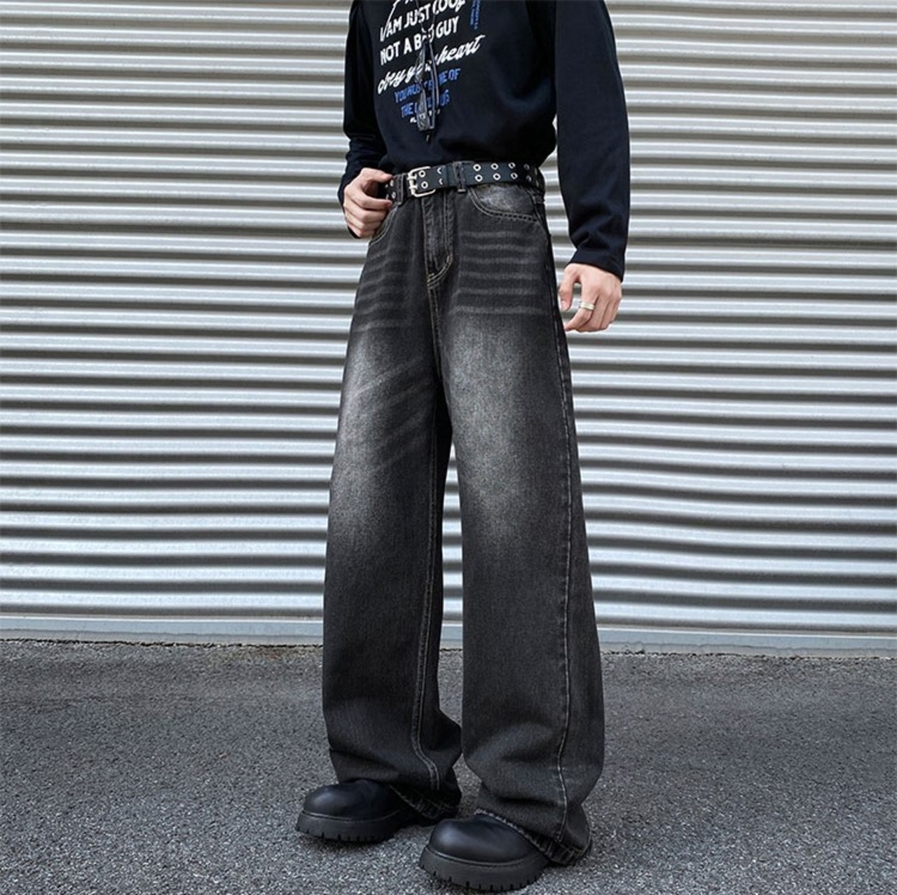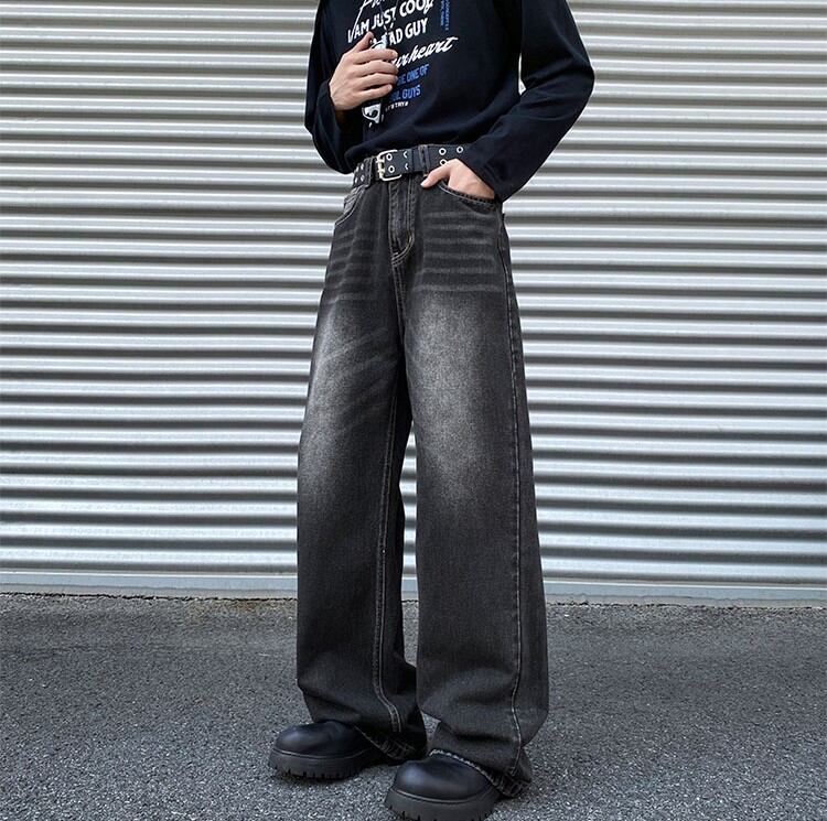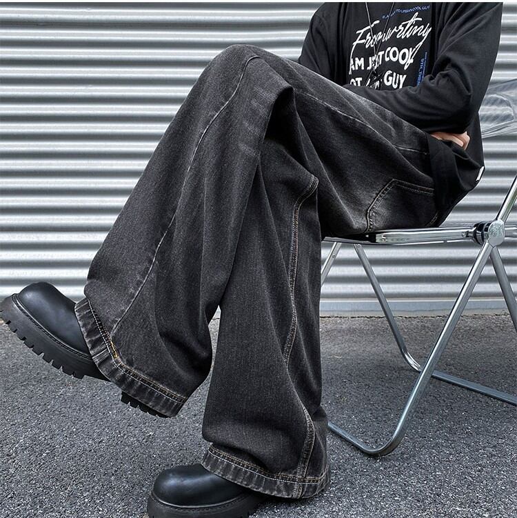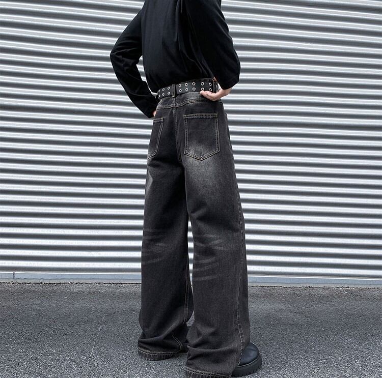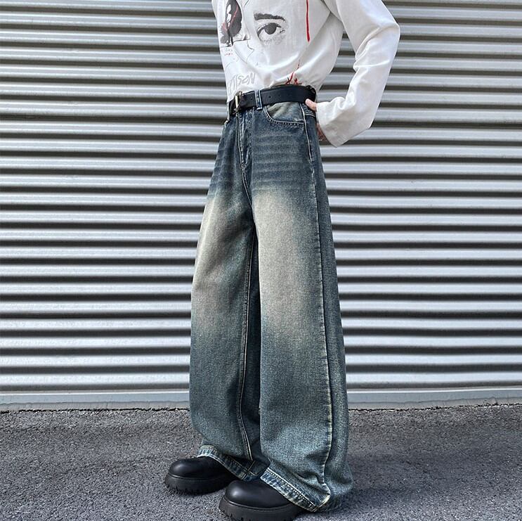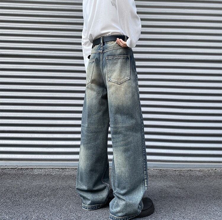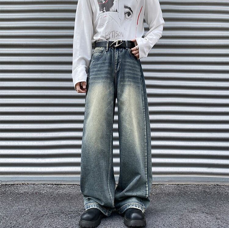 ワイドレッグのシルエットが特徴的なデニムパンツです。