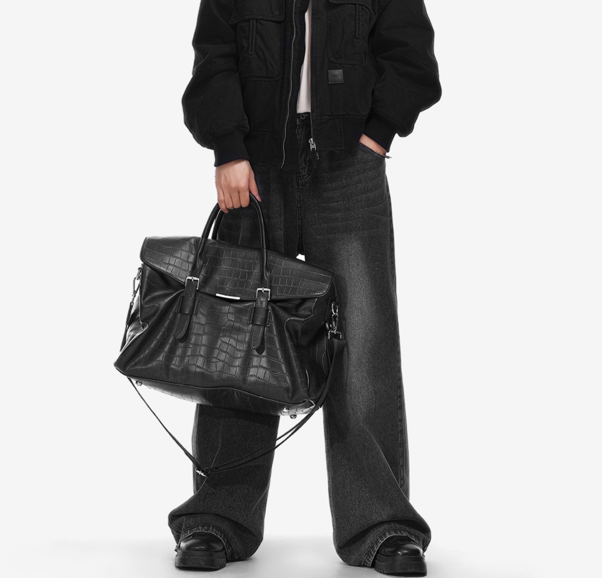クロコダイル柄ボストンバッグ M00028