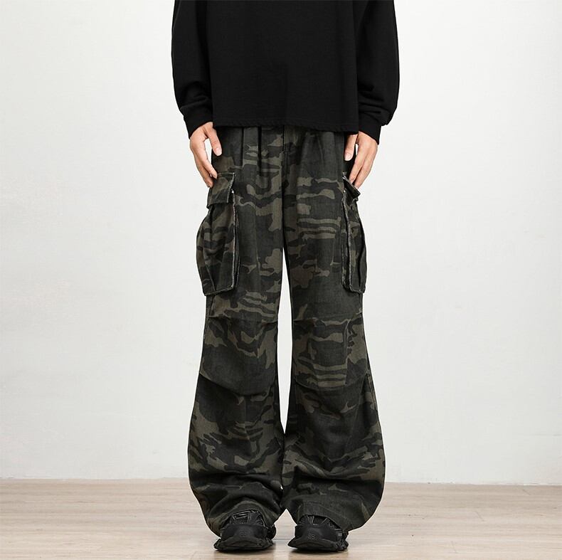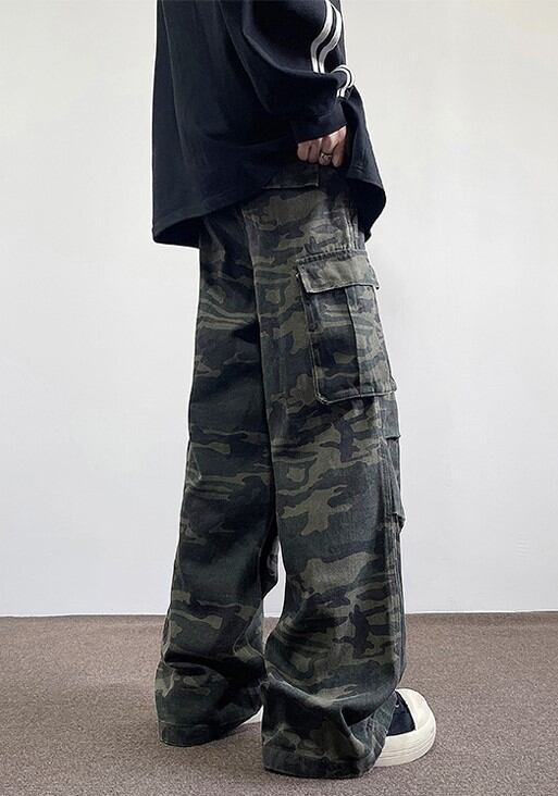 存在感のある迷彩柄と、ルーズなシルエットが魅力のカーゴパンツ。