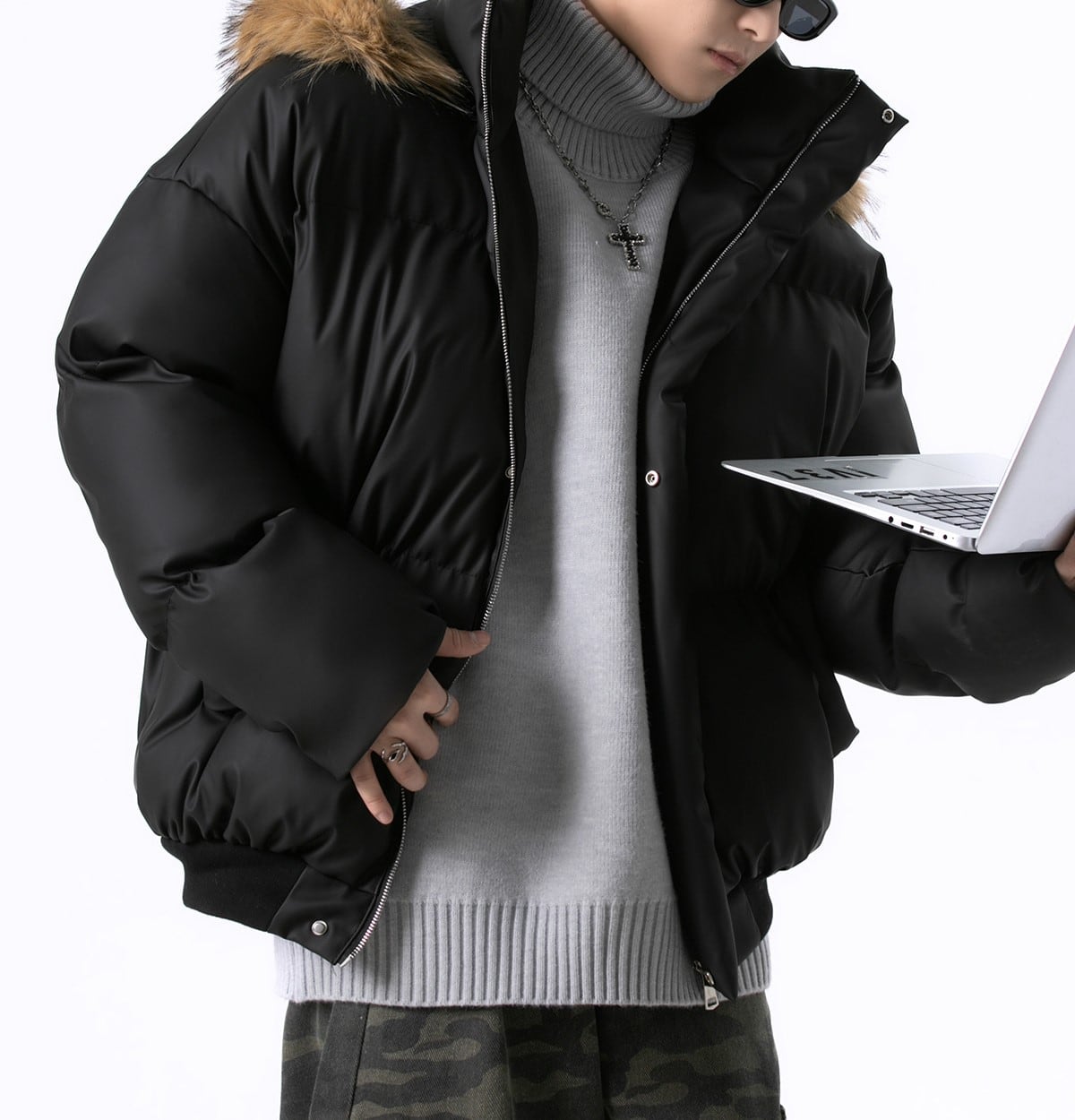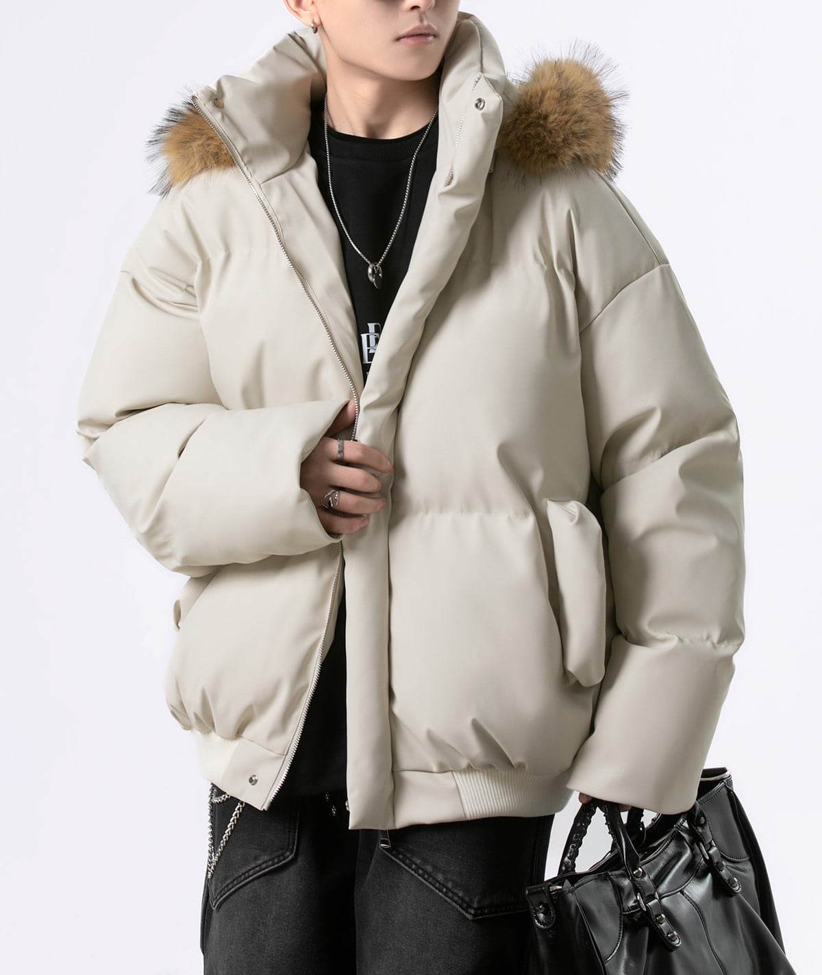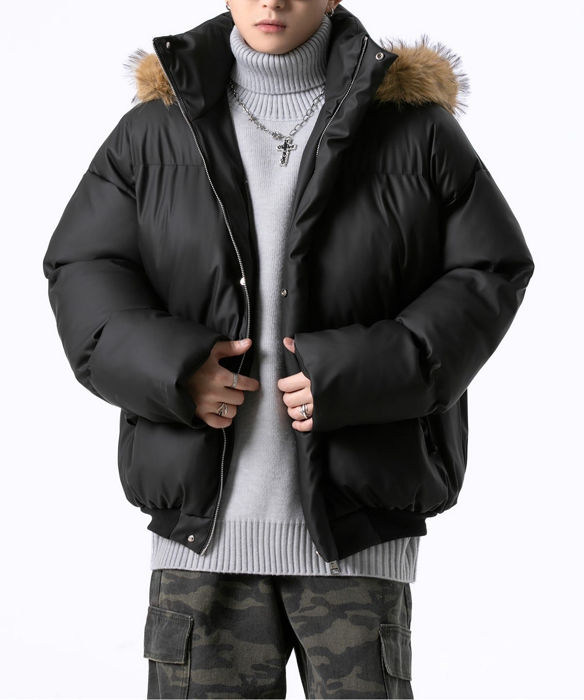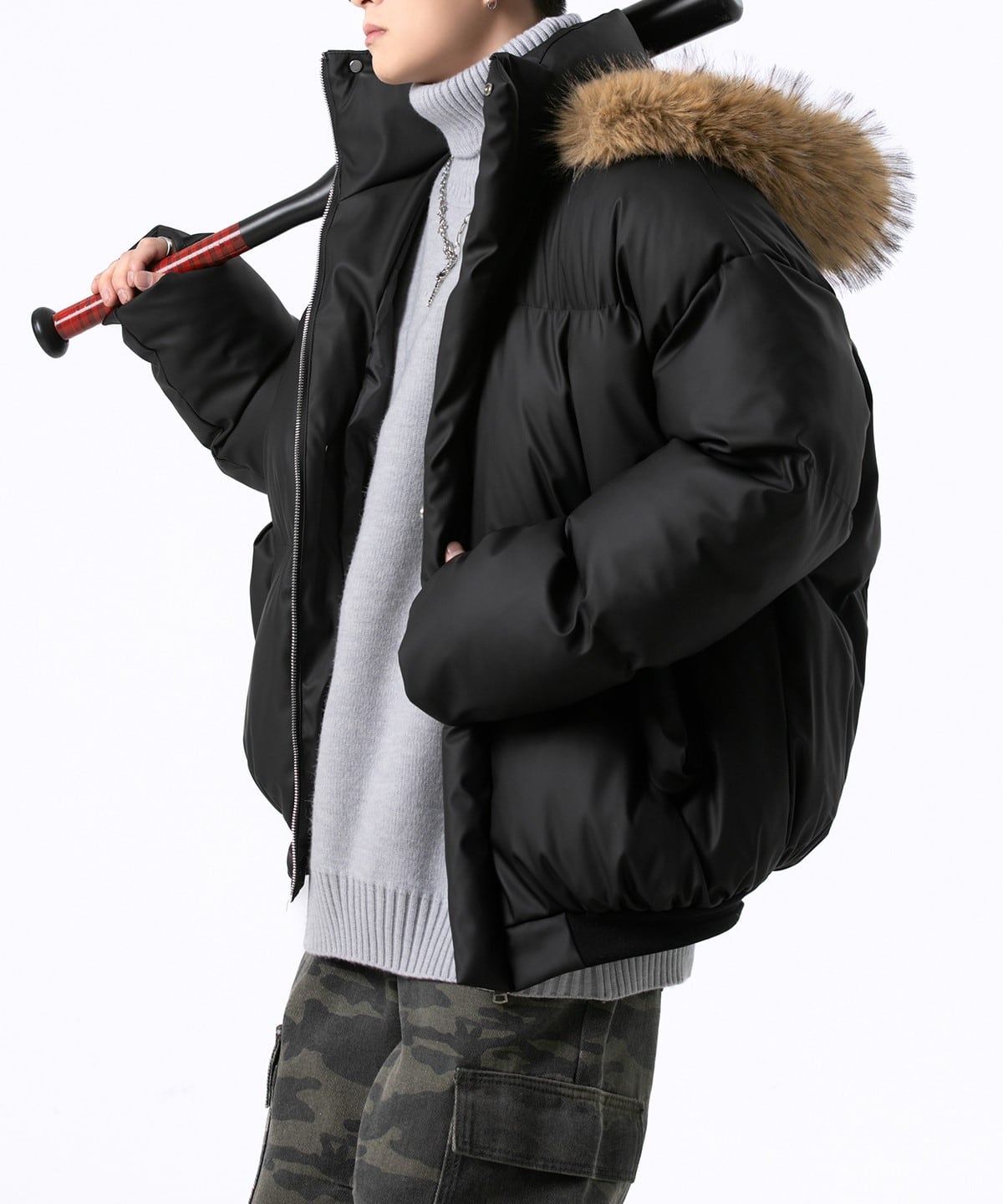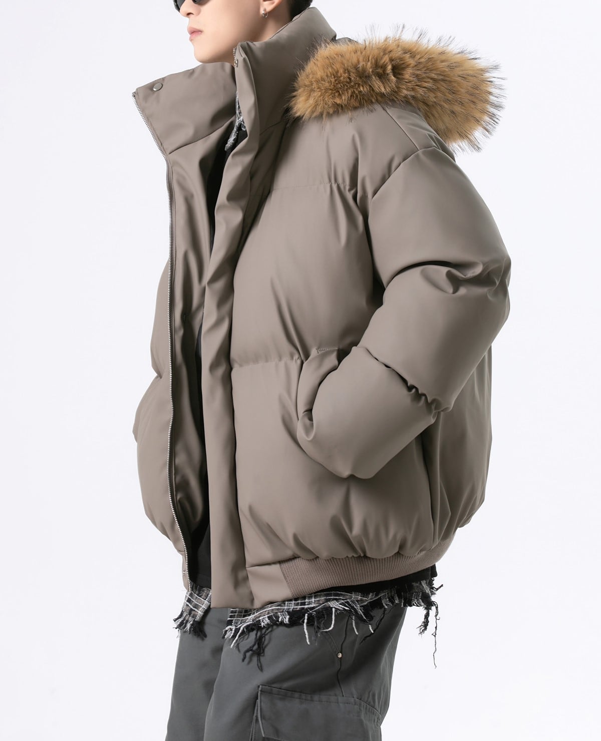 ファーフードキルティングダウンジャケット M00035