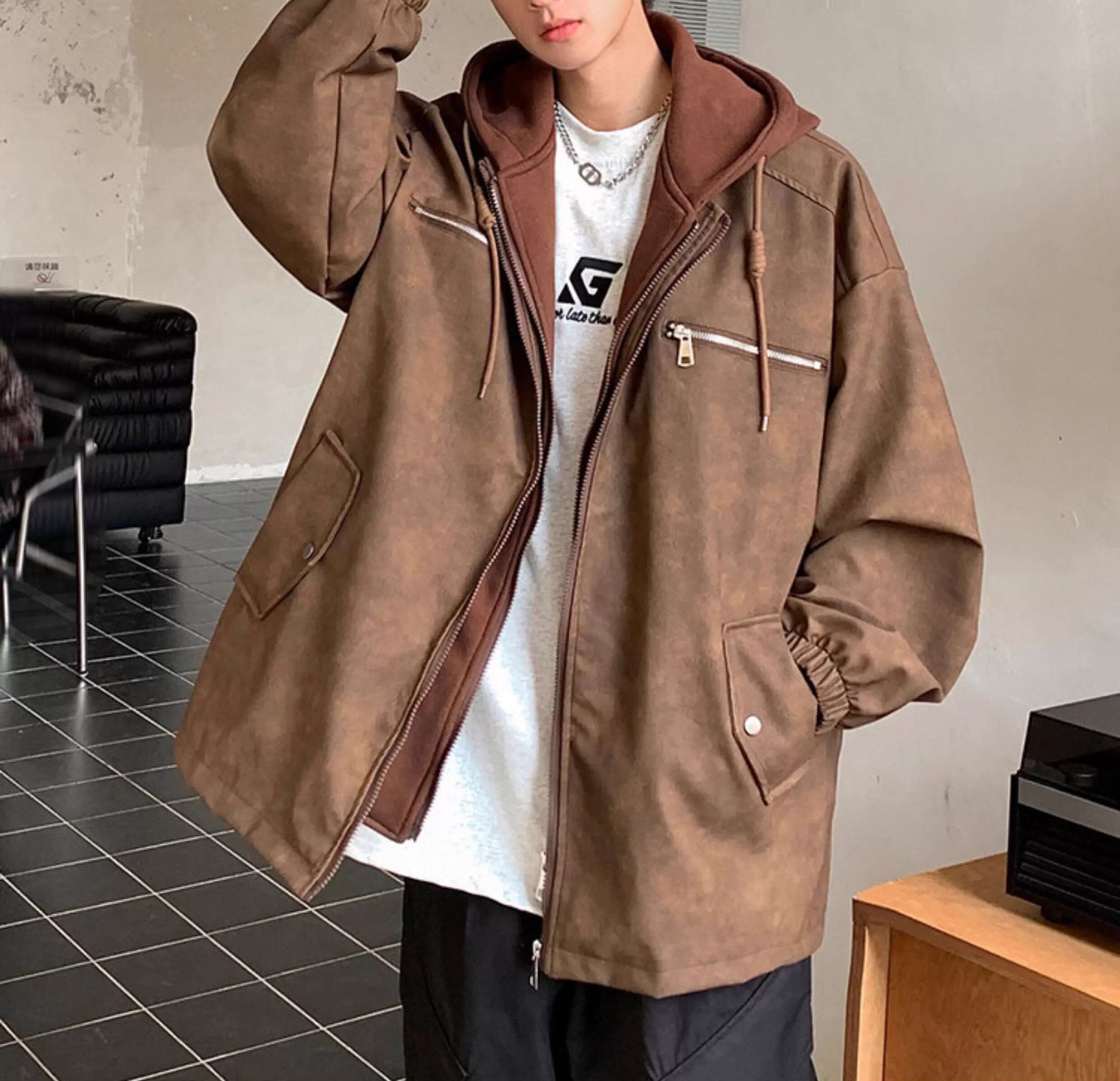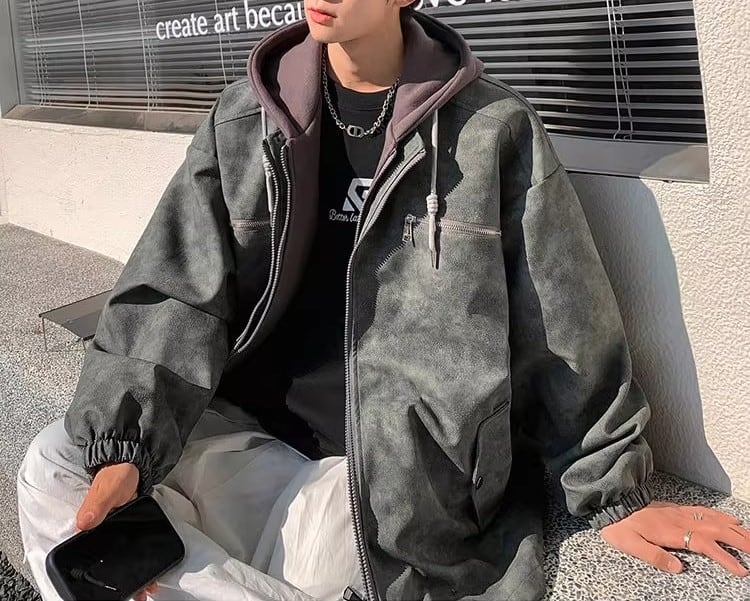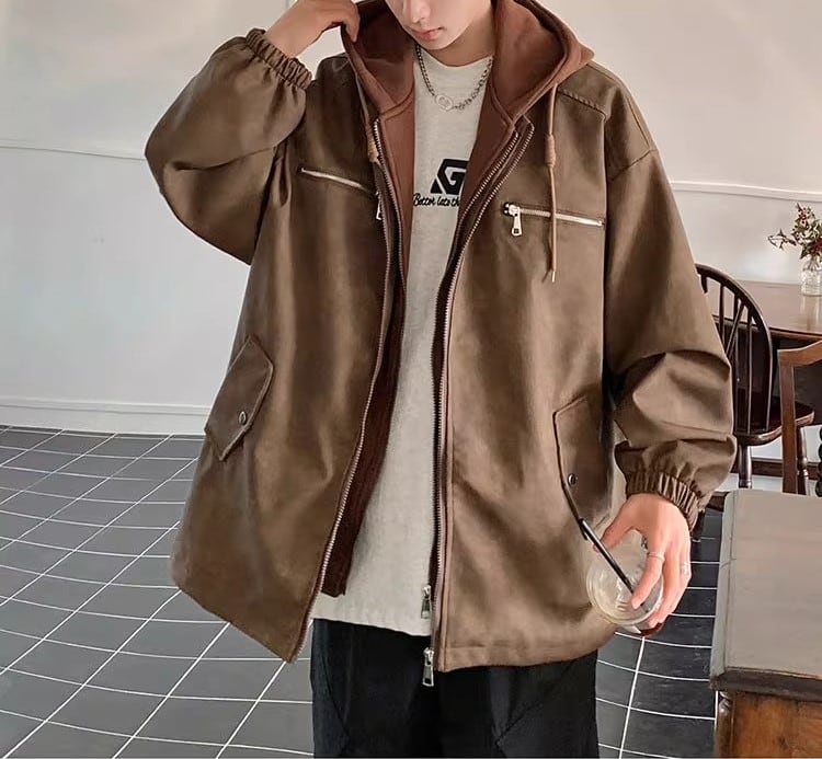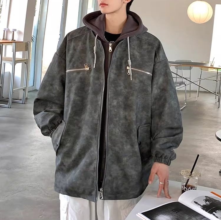 カジュアルな着こなしに最適な、フード付きジャケットです。