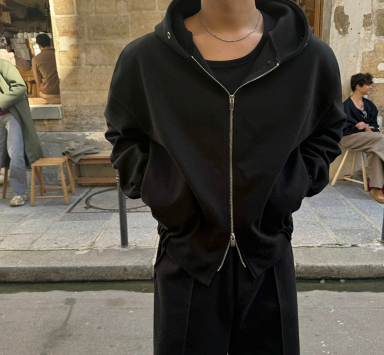 流行りの短めシルエットですっきりした着こなしが出来るスウェットパーカーです。