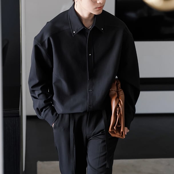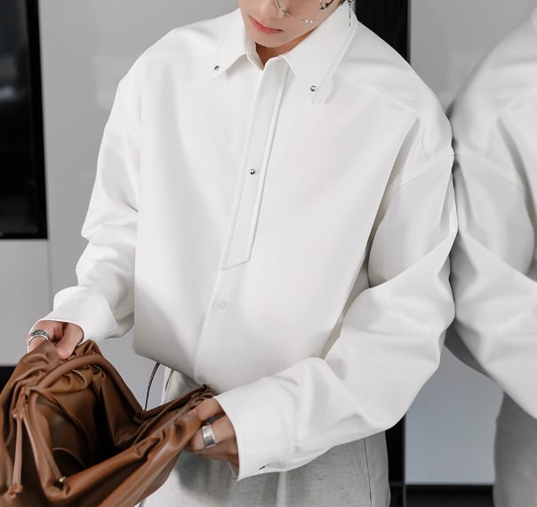 襟や手元にさりげなく装飾を施したシンプルシャツ。