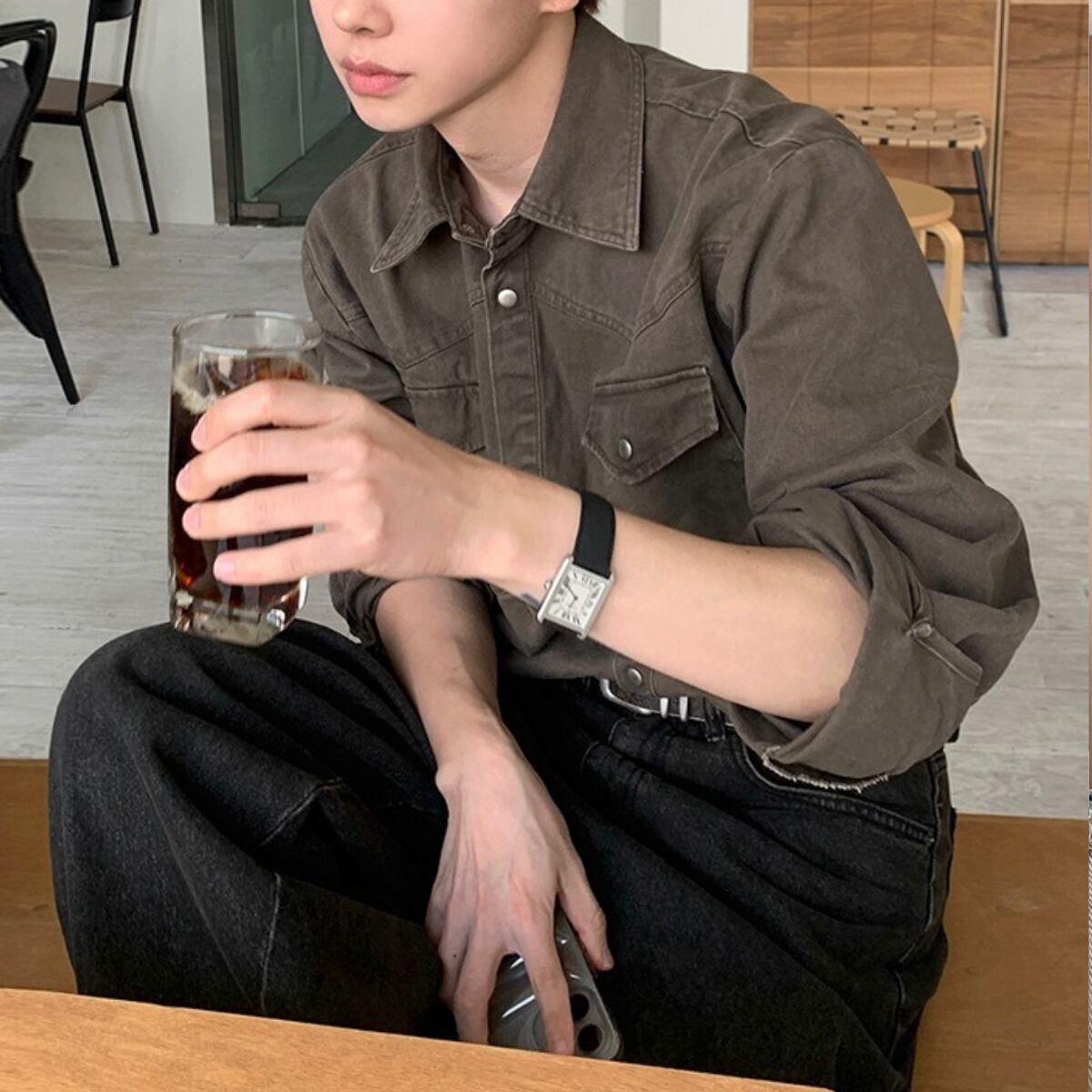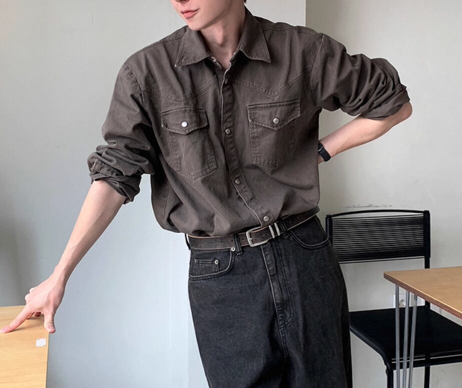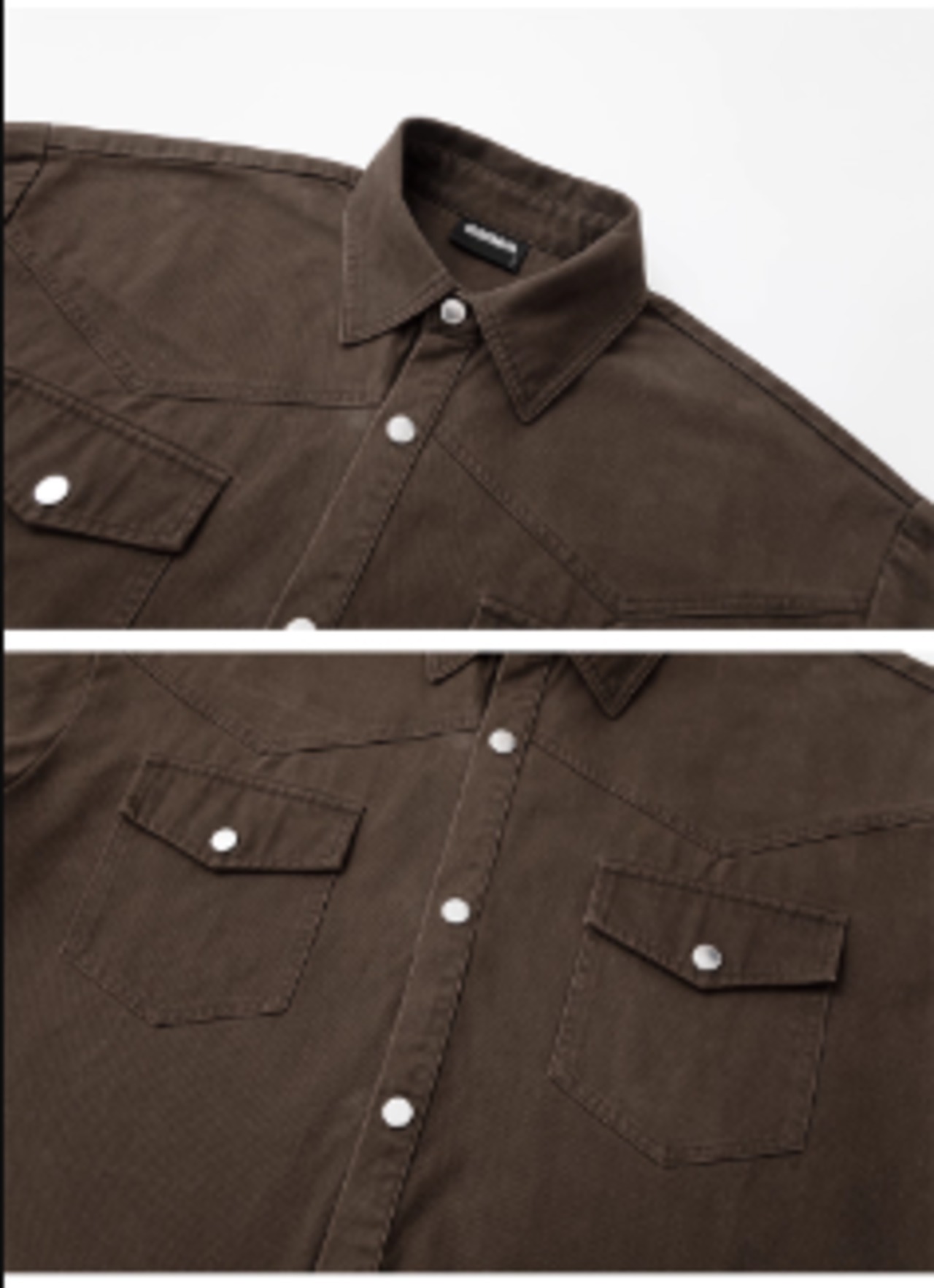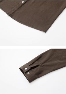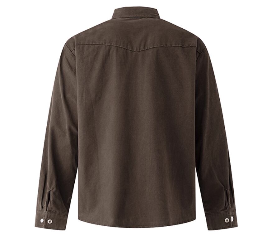 深みのあるブラウンに、構築的なポケットディテールが映えるユーティリティシャツ。