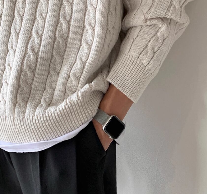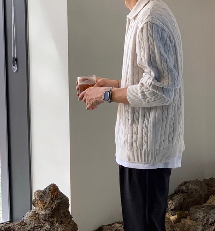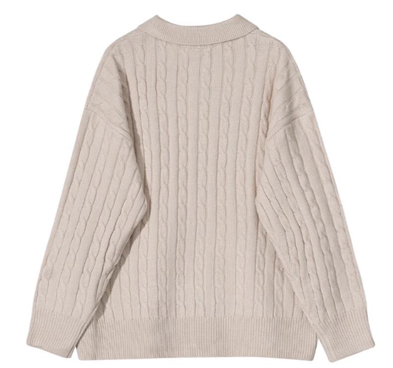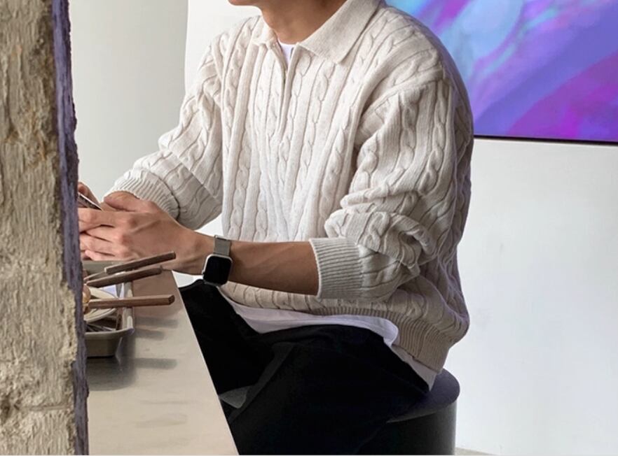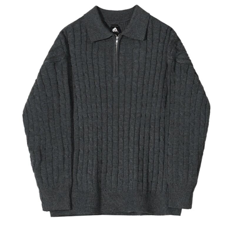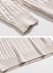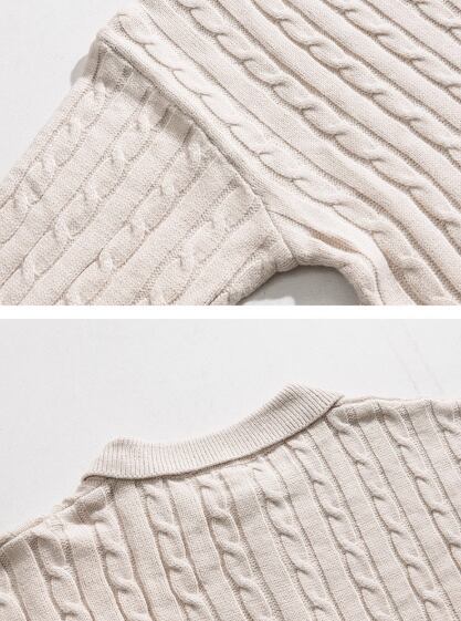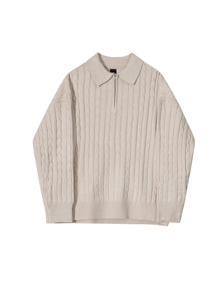 立体感のあるケーブル編みに、ハーフジップと襟付きのデザインを合わせたニットトップス。