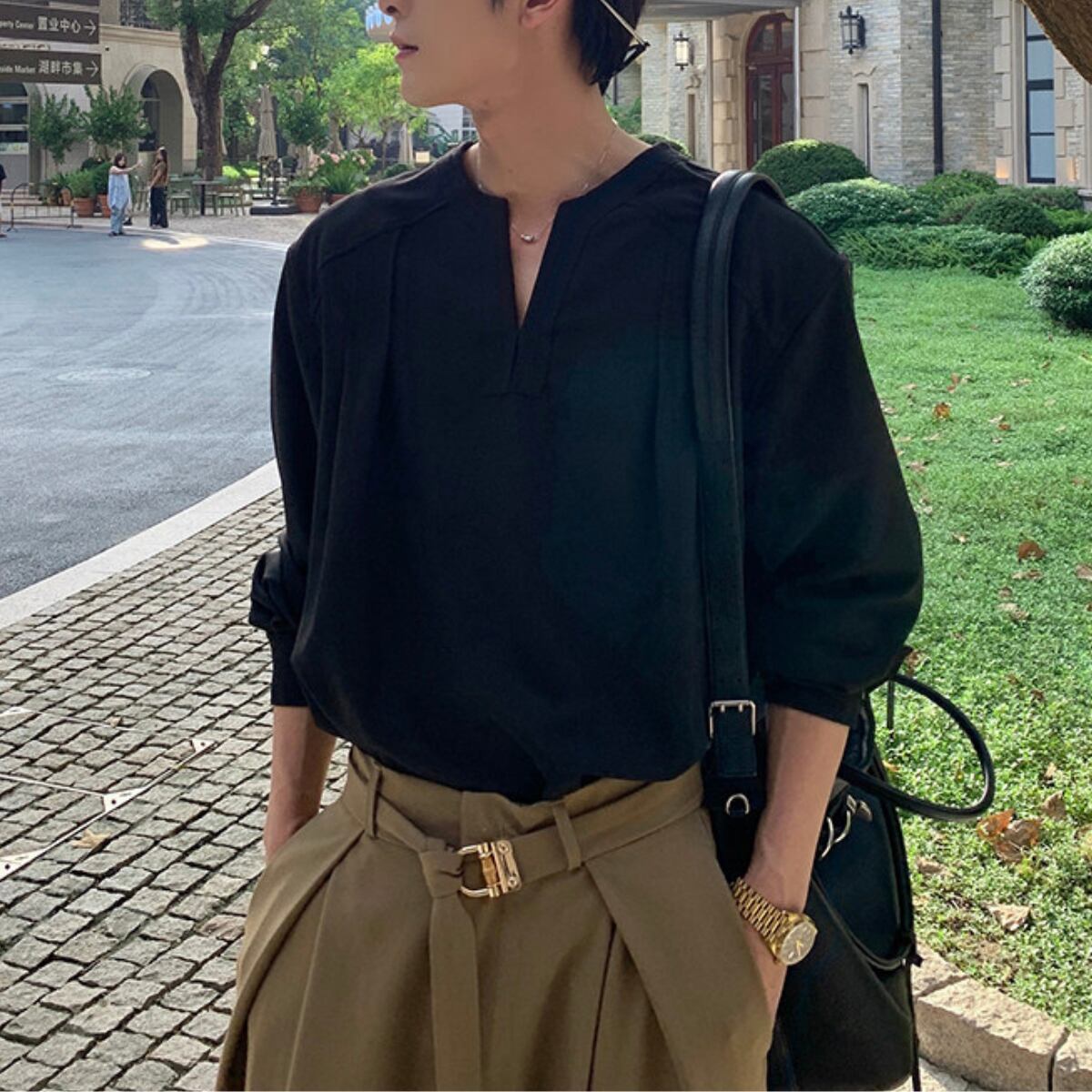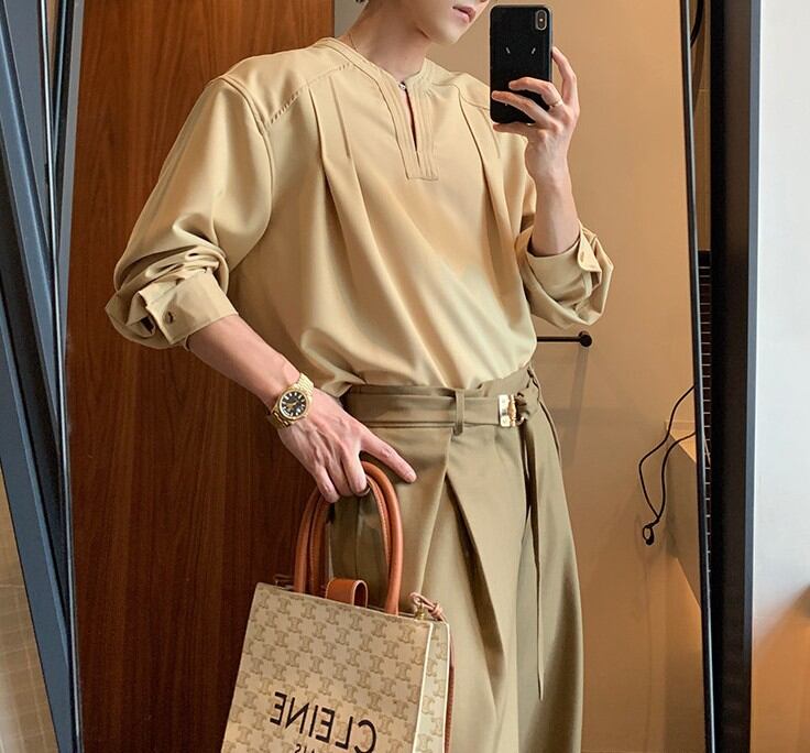 ワイドスリットネックシャツ M00085