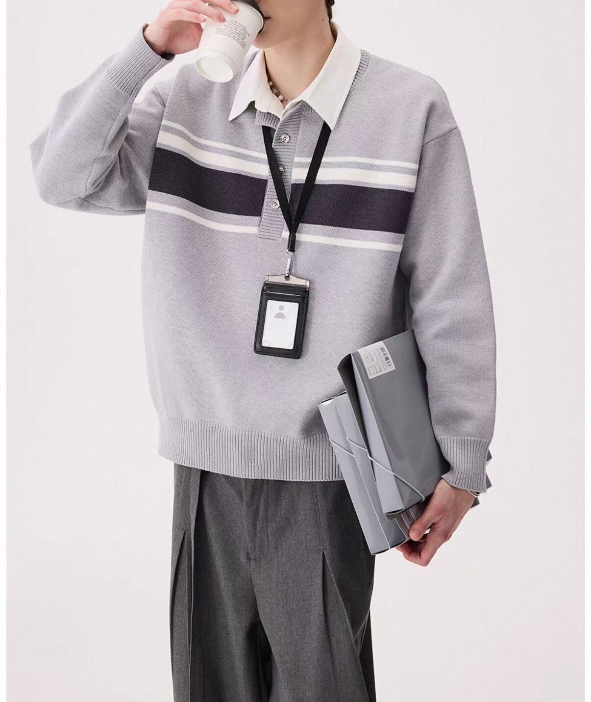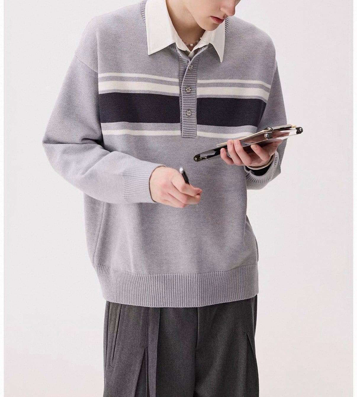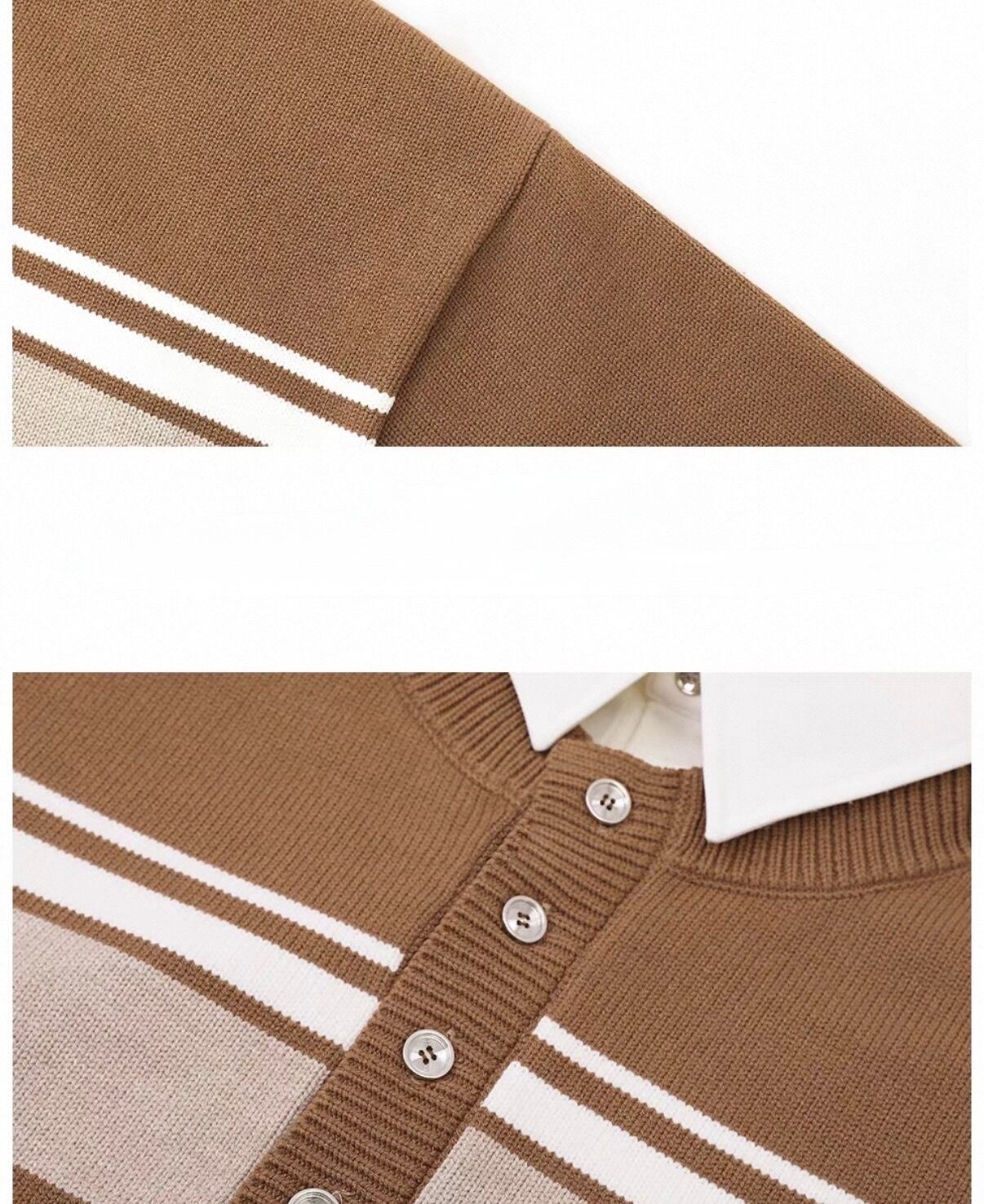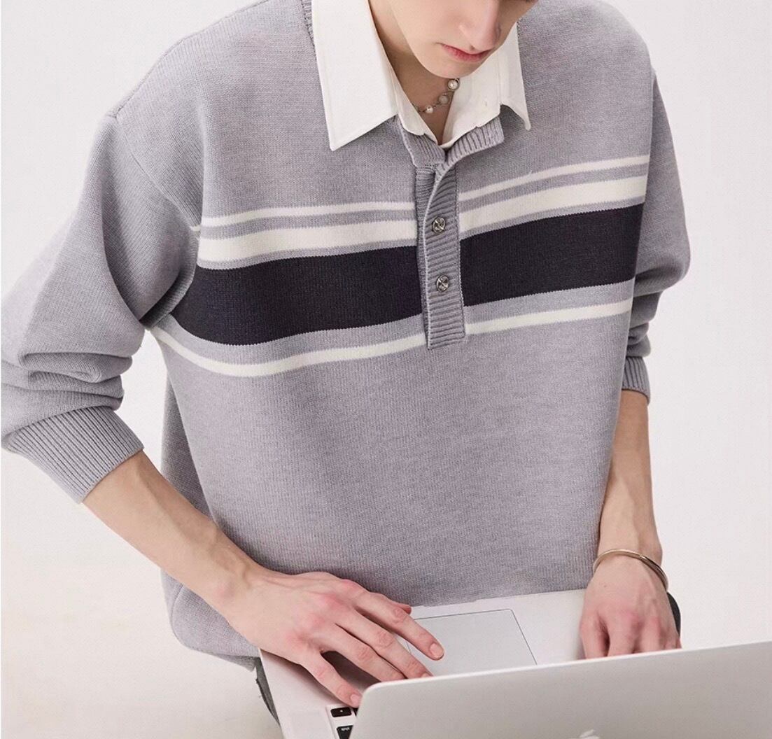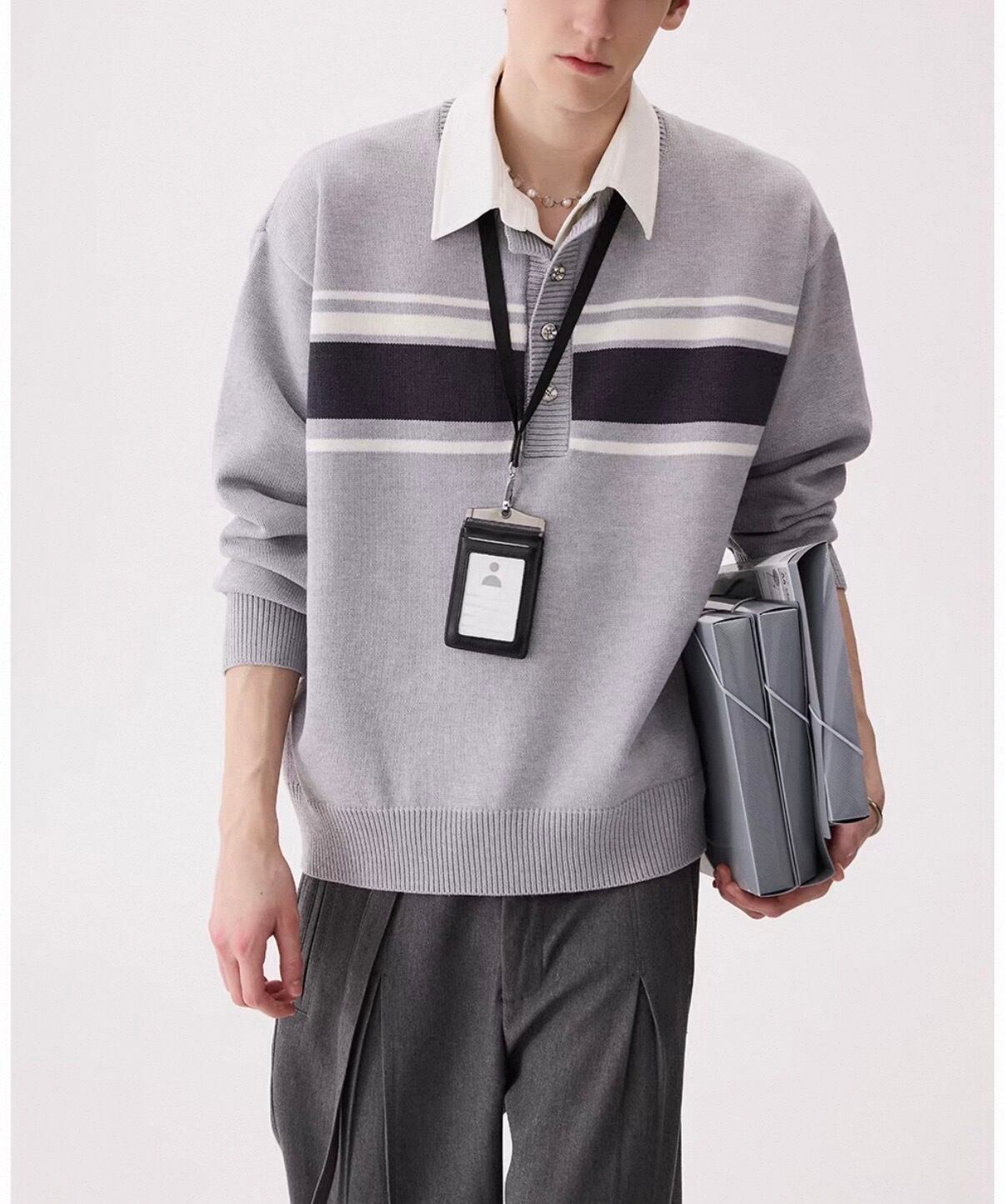 白襟と胸元のボーダーラインがアクセントになったカジュアルニット。