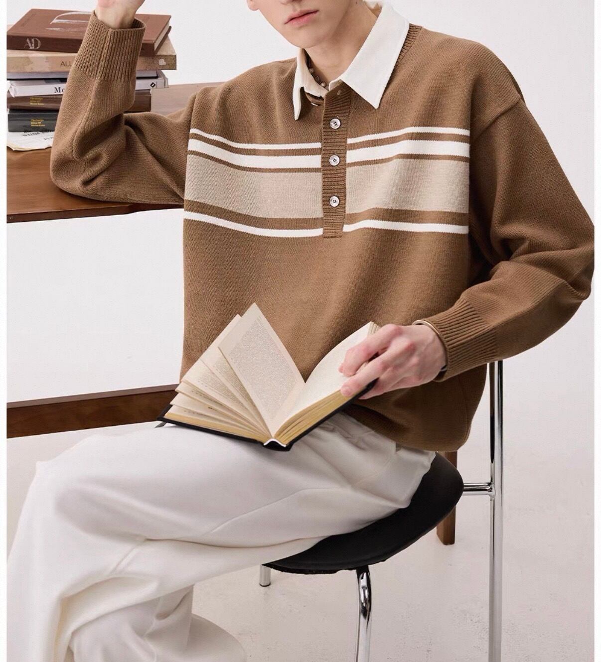 ベーシックなカラーをベースに、清潔感のある配色が加わることで、シンプルなのに“雰囲気が出る”一枚に仕上がっています。