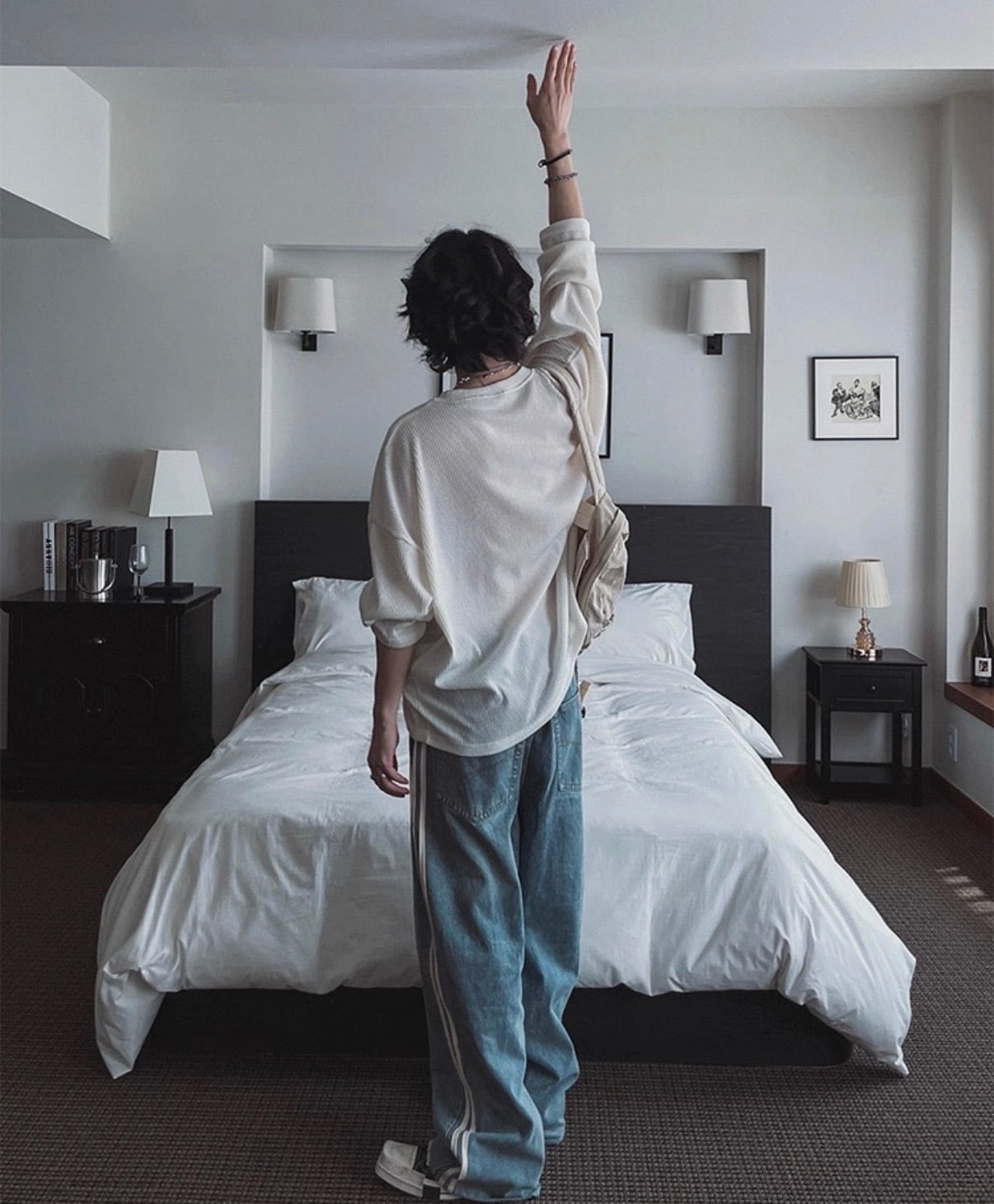 立体感のある素材が光を柔らかく拾い、シンプルなスタイルにも奥行きを与えます。